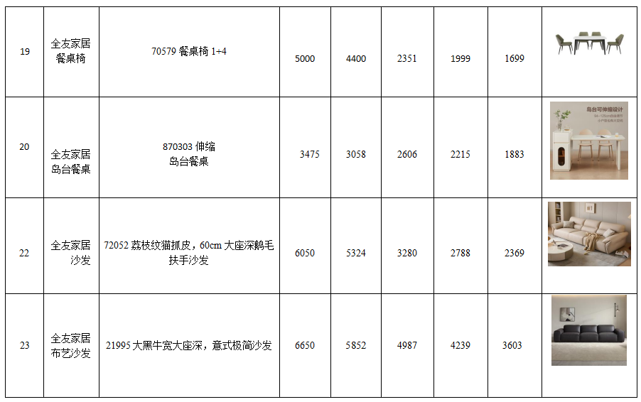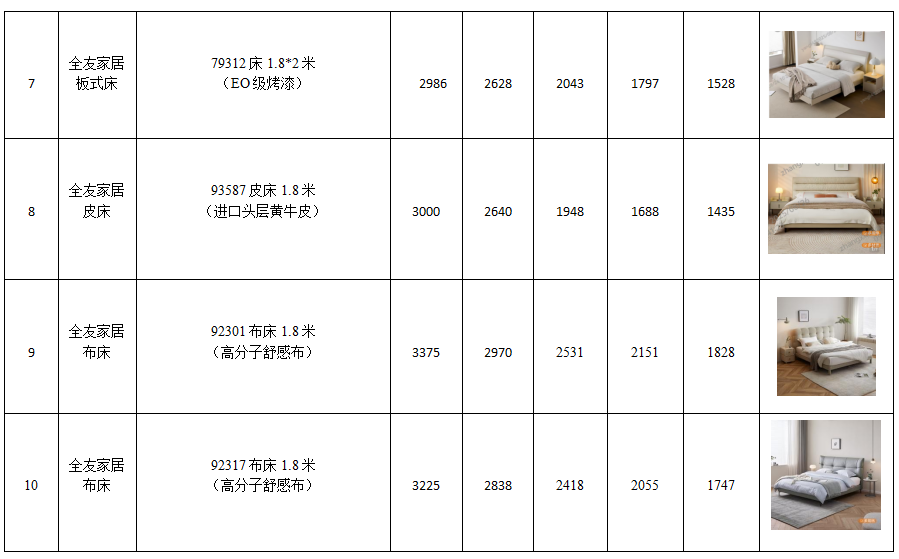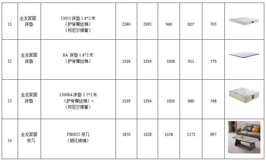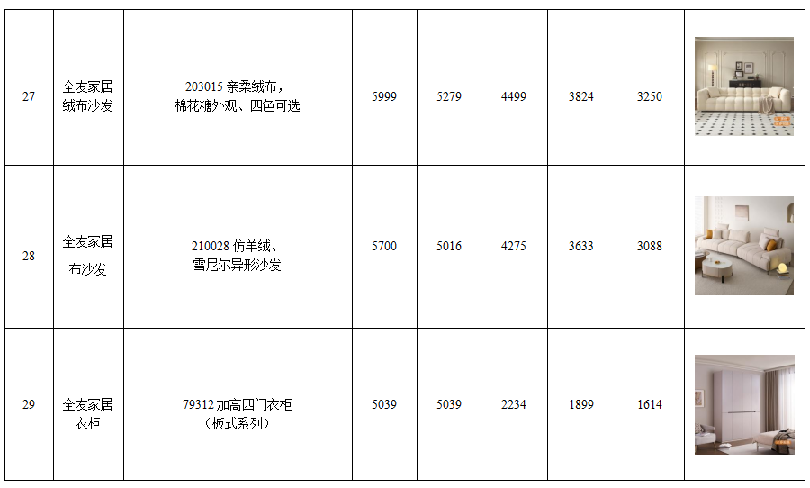 1.易德整装-全友家居全场正价商品按基础折扣88折基础上享受职工内购95折、政府补贴12%(订单全部金额的12%)、再享受国家补贴15%(单品类最高补贴2000元);特价和清仓商品在最低价基础上再享受政府补贴12%。