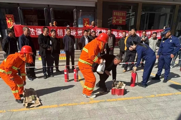 随后,在供销购物商场前开展了紧张有序的消防演练。演练围绕灭火器规范使用、火灾报警流程、现场快速逃生等核心内容展开,专业人员先示范灭火器“提、拔、握、压”操作要点,再指导大家模拟报警、有序疏散。整个过程紧凑高效,让参与人员快速掌握了实用的消防应急技能,极大地激发了职工学习消防知识、提升消防技能的热情与动力。