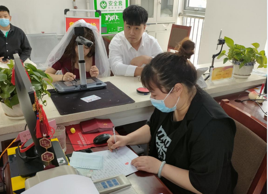 为了满足广大青年群众在当天办理结婚登记的美好愿望,积极回应民众诉求,河北省张家口市怀来县民政局工会组织婚姻登记处全体干部职工在5月20日 (星期六)为爱加班,办理结婚登记。